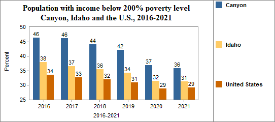 In Canyon, the percent of the population with incomes below 200% of the poverty level . . .