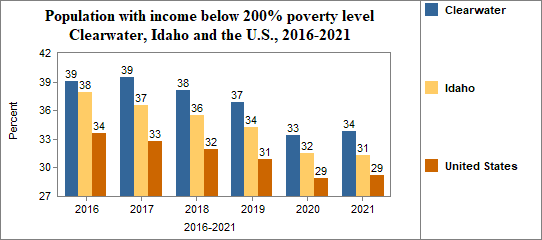 In Clearwater, the percent of the population with incomes below 200% of the poverty level . . .