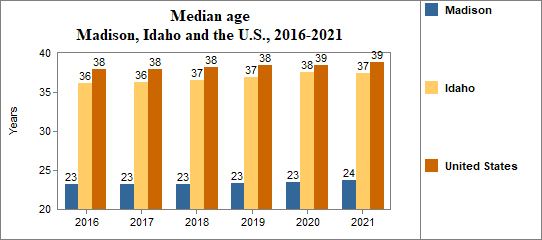 Median age is the age at which half the population is younger and half is older. A lower median age indicates a relatively younger population, while a higher median age indicates a relatively older population.