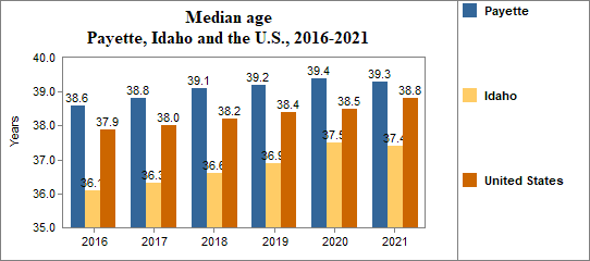 The median age in Payette . . .