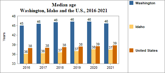 The median age in Washington . . .
