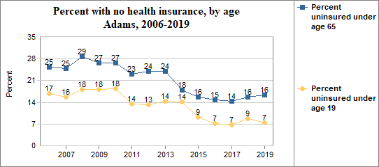 - the percent under age 65 without health insurance ranked 13th - from highest to lowest - out of Idaho's 44 counties;