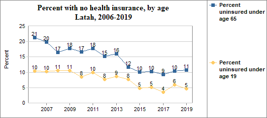 - the percent under age 65 without health insurance ranked 40th - from highest to lowest - out of Idaho's 44 counties;