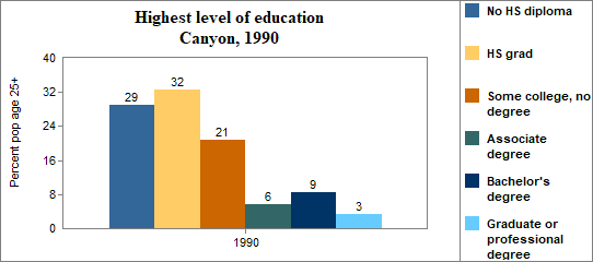In Canyon . . . - 24 percent of the population 25 years and older in 2000 had no high school diploma, compared to 15 percent in Idaho