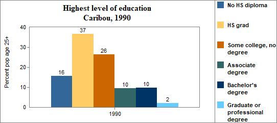 In Caribou . . . - 13 percent of the population 25 years and older in 2000 had no high school diploma, compared to 15 percent in Idaho