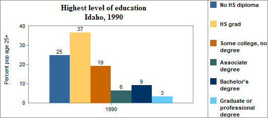 In Idaho . . . - 17 percent of the population 25 years and older in 2000 had no high school diploma, compared to 15 percent in Idaho