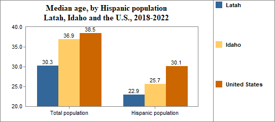Latah: Median age by Hispanic origin