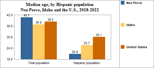 The median age in 2017-2021 in Nez Perce...