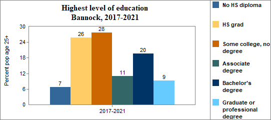 Educational attainment refers to the highest level of school completed. In Bannock between 2017-2021 . . .