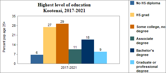 Educational attainment refers to the highest level of school completed. In Kootenai between 2017-2021 . . .