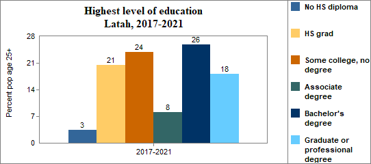Educational attainment refers to the highest level of school completed. In Latah between 2017-2021 . . .