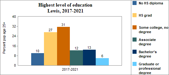 Educational attainment refers to the highest level of school completed. In Lewis between 2017-2021 . . .