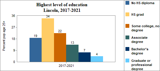 Educational attainment refers to the highest level of school completed. In Lincoln between 2017-2021 . . .