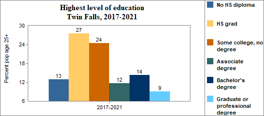 Educational attainment refers to the highest level of school completed. In Twin Falls between 2017-2021 . . .