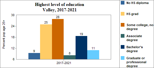 Educational attainment refers to the highest level of school completed. In Valley between 2017-2021 . . .