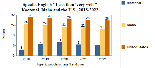 - the native-born Hispanic population numbered 7,247, and 76 percent spoke only English, 23 percent spoke English "Very well" while 2 percent spoke English "Less than 'very well,'"
