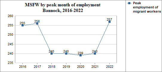 - and in that peak month the migrant workers made up 29 percent of Bannock's agricultural workforce.