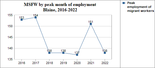 - and in that peak month the migrant workers made up 31 percent of Blaine's agricultural workforce.