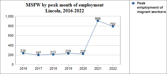 - and in that peak month the migrant workers made up 82 percent of Lincoln's agricultural workforce.