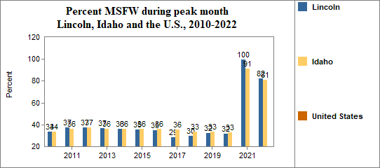 In this indicator we report on the average number of agricultural workers throughout the year and the number and month of peak employment for migrant and seasonal farmworkers (MSFW). The number of MSFW changes month to month as workers move for seasonal employment.
