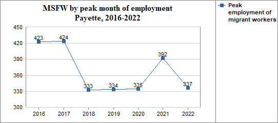 - and in that peak month the migrant workers made up 24 percent of Payette's agricultural workforce.
