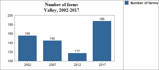 - the number of farms increased 30 percent from ten years earlier.