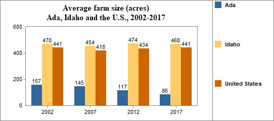 This indicator shows the total amount of farmland, as well as the average and median size of farms The median size of farms is the size at which half of all the farms are smaller and half are larger. A larger median size of farms indicates that there are more large farms.