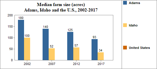 This indicator shows the total amount of farmland, as well as the average and median size of farms The median size of farms is the size at which half of all the farms are smaller and half are larger. A larger median size of farms indicates that there are more large farms.