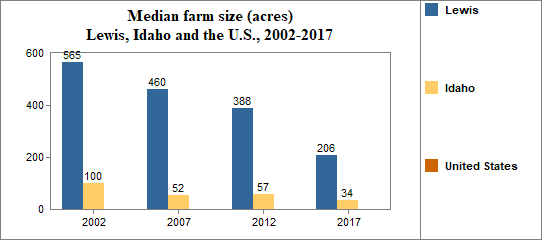 - the median farm size was 206 acres, and