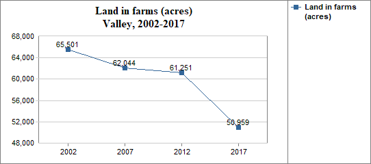 - the amount of farmland decreased 18 percent from 2007 to 2017.