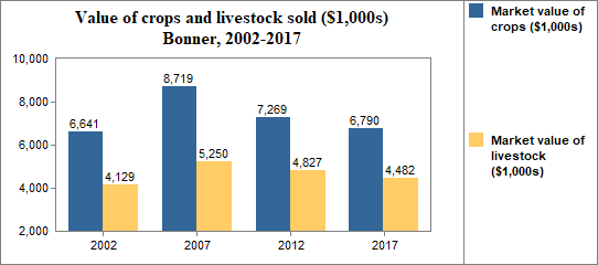 - the average market value per farm of all agricultural products sold decreased by 54 percent between 2007 and 2017.
