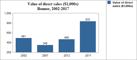 Here we report the number of farms that sell at least some of their products directly to individuals for human consumption, as well as the value of these product sales.
