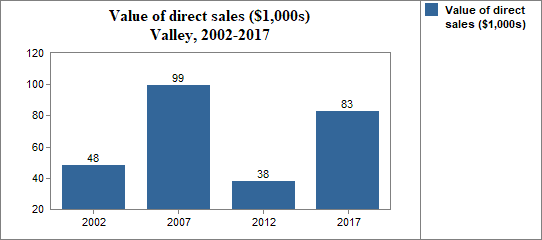 Here we report the number of farms that sell at least some of their products directly to individuals for human consumption, as well as the value of these product sales.