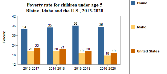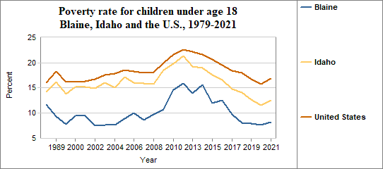 Among Blaine's residents, the poverty rate for people under 18 . . .