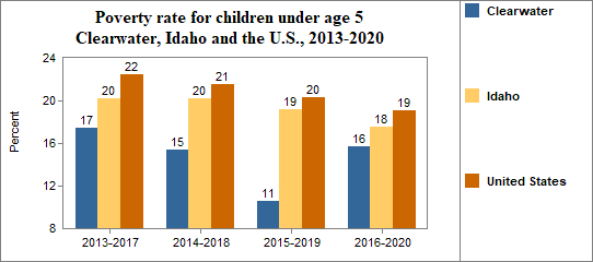 - was 15.7 percent in 2016-2020 compared to 17.6 percent in Idaho;