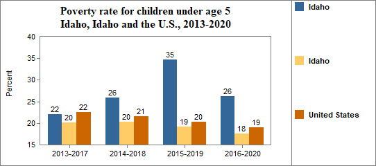 - was 26.2 percent in 2016-2020 compared to 17.6 percent in Idaho;