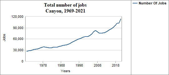 In Canyon, the number of jobs . . .