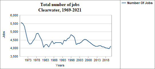 In Clearwater, the number of jobs . . .
