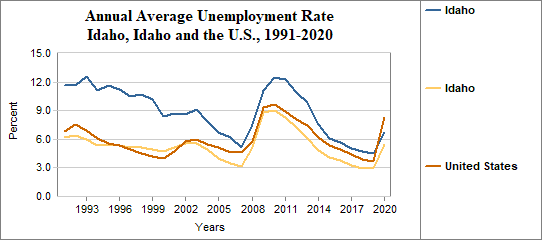 Idaho's monthly unemployment rate was 4.4 percent in July, 2025. This compares to 3.8 percent in Idaho as a whole.