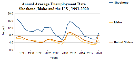 Shoshone's average annual unemployment rate in 2020 . . .