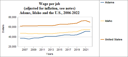 Wage per job refers to the average annual wage or salary per job, in other words, total compensation divided by the number of filled jobs. Here, we provide information on the real wage per job, which means the data have been adjusted for inflation.