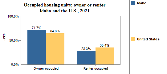 - in 2017-2021, 63.5 percent of all housing units were owner occupied, 25.1 percent were occupied by renters, and 11.5 percent were vacant.