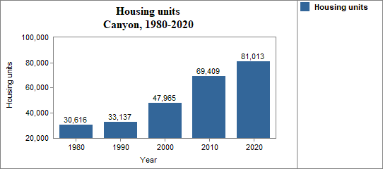 - the number of housing units increased by 8.2 percent from 1980 to 1990; increased by 44.7 percent from 1990 to 2000; increased by 44.7 percent from 2000 to 2010; and increased by 16.7 percent from 2010 to 2020;