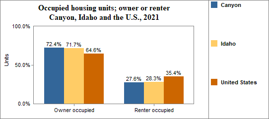 - in 2017-2021, 69.8 percent of all housing units were owner occupied, 26.6 percent were occupied by renters, and 3.6 percent were vacant.