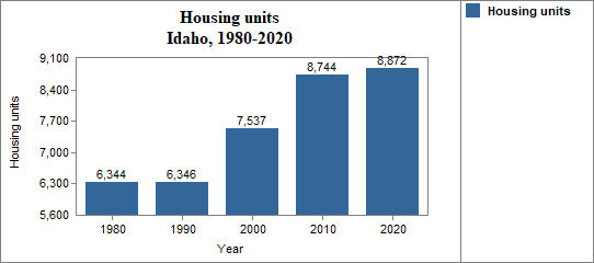 - the number of housing units increased by 0.0 percent from 1980 to 1990; increased by 18.8 percent from 1990 to 2000; increased by 16.0 percent from 2000 to 2010; and increased by 1.5 percent from 2010 to 2020;