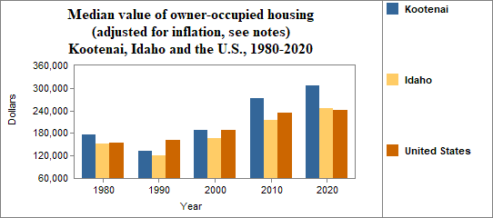 The real median value of owner occupied housing in Kootenai from 2017-2021. . .