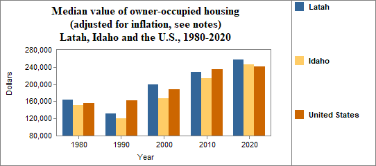 The real median value of owner occupied housing in Latah from 2017-2021. . .