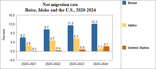 - Had a net migration rate of 6.2 percent compared to 2.6 percent for Idaho.