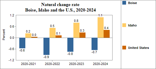 - Had a natural change rate of -0.6 percent compared to 0.2 percent for Idaho.