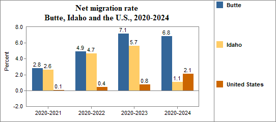- Had a net migration rate of 2.8 percent compared to 2.6 percent for Idaho.